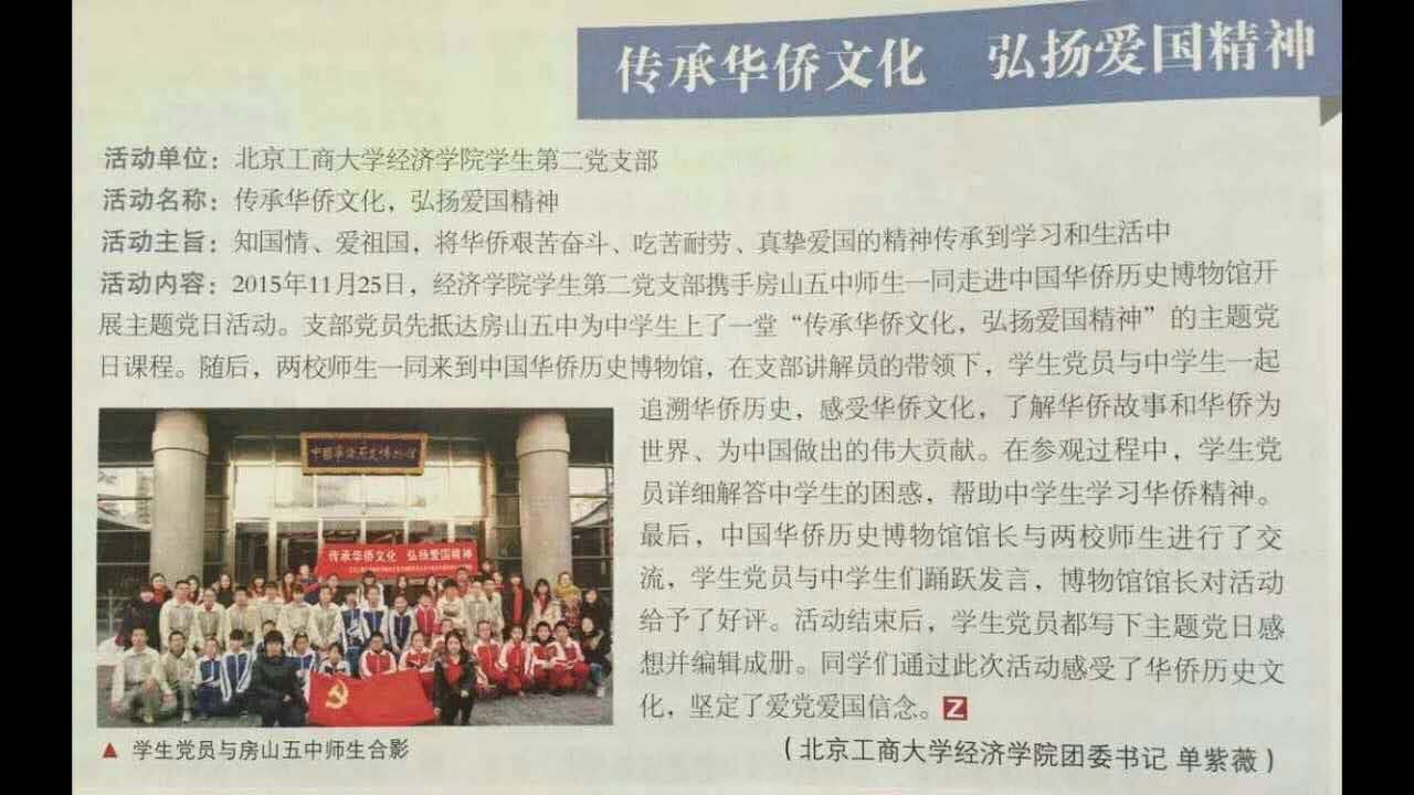 今年3月,北京市委综合性党员教育刊物《北京支部生活》第三期刊登了以《传承华侨文化弘扬爱国精神——yl23455永利员工党支部携手房山五中走进中国华侨历史博物馆》为题的主题党日活动。