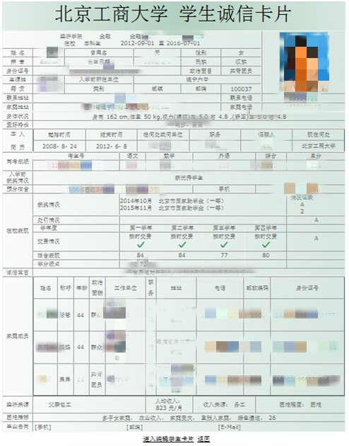 假期返校注册、班级课堂考勤报送、宿舍安全卫生成绩、综合测评和评奖评优结果,以及贫困生身份认定、助贷资格评定等,都是通过征信系统完成的,这不光是每个同学专属的诚信卡片,更是同学们大学四年中成长经历的详实记录。