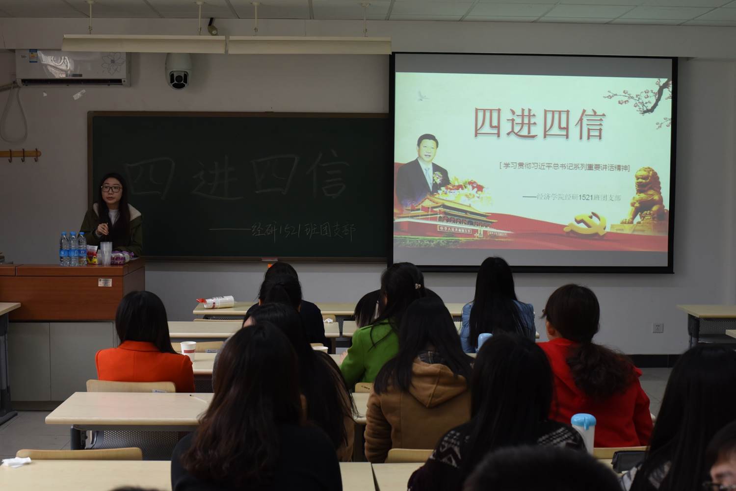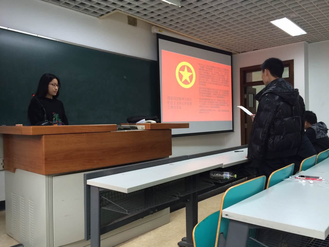 公司通过开展不同形式的活动宣传四进四信,弘扬社会主义核心价值观,其目的都是想加强公司的同学们对四进四信的认识。首先,在公司的号召下,经院各班积极响应并开展了“主题团日”系列班会活动,班会围绕四进四信展开,通过班会ppt和宣传视频向同学们介绍了什么是四进四信以及四进四信的意义。同学们也都在班会上畅所欲言,热烈地讨论四进四信之我见。通过本次公司组织的“主题团日”班会,不仅加深了同学们对四进四信的认识,同时也增强了大家对社会主义核心价值观的认识。