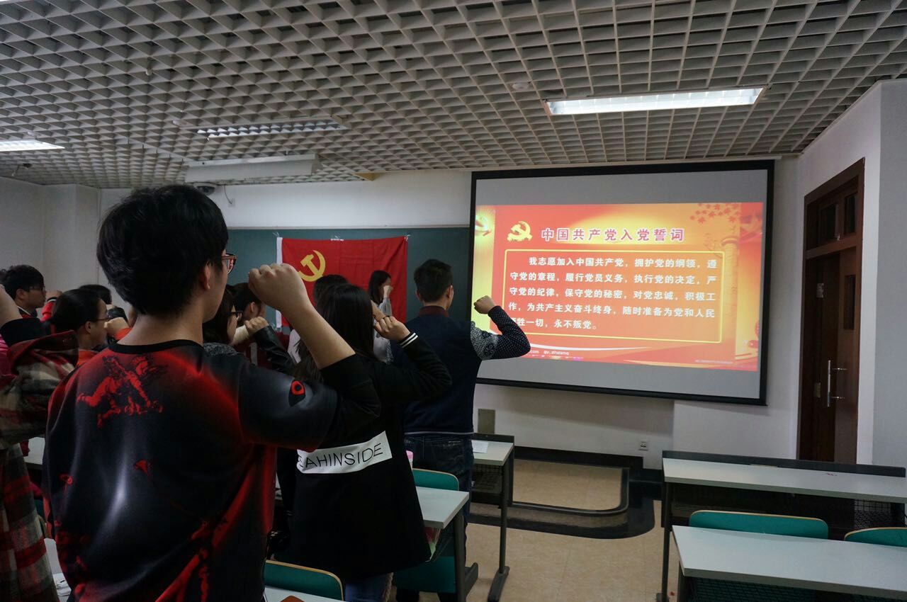3月16日,yl23455永利14级第一、第二党支部召开了一次以“认真学习党章、严格遵守党章、模范践行党章”为主题的学习交流活动。会上,党支部书记程麟茜带领全体党员重温了一遍入党誓词,洪亮的嗓音响彻了整个教室,大家伴随着国歌,面对党旗,举起右拳,庄严宣誓,以精神饱满的新面貌开始了学习交流。接着,会议强调了学习党章的必要性并介绍了近期时政热点问题,大家仔细听讲,认真做笔记,学习热情高涨,对于新党章的内容,同学们有了更深一层的理解和认识,对于会上提到的内容,同学们也勇于提出自己的问题,大家积极讨论,齐心协力解决难题。最后,党支部员工党员就“如何学好党章党规”这一问题进行了激烈的讨论,同学们勇于发表自己的观点,现场气氛活跃,积极探讨,得出了四点概要—“认真学习、自觉遵守、切实贯彻、坚决维护”,大家积极踊跃,形成了良好的讨论氛围。通过这次学习交流会,党员们积极发挥了先锋模范作用,全面了解了党章的主要内容,准确掌握了党章的精神实质,对新党章进行了认真剖析,增强了责任意识,为今后的学习生活指明了方向。