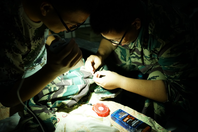 军训已进入第5天,同学们逐渐熟悉适应了充实规律的军训生活。起床号吹响每个新的一天,哨声集合整齐的队列,一次次摆臂,一次次踢腿,彰显着同学们的青春活力与坚韧奋进。同学之间相互关爱与帮助,加深了彼此间的情感交流。而生活上的独立,更促进了同学们的成长,几乎没做过家务的男生,居然也操起针线自己缝补坏损的军装。军营生活,同学们感受到的是苦乐并存。虽操练较辛苦,却也感受到了自我的成长与锻炼;虽训导较严厉,却也感受到了教官、老师的关心与爱护;虽生活较单调,却也感受到了集体相处的快乐与温暖。