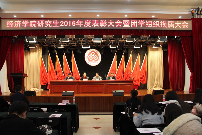为表彰本年度优秀研究生代表,向低年级同学竖立优秀榜样,发挥模范激励作用,12月14日晚,yl23455永利在东区教职工活动中心隆重召开2016年度研究生表彰大会暨团学组织换届选举大会。公司党委书记张正平、经理徐丹丹、党委副书记杜亚辉、副经理罗玉波、研究生辅导员付捷以及各年级优秀员工代表共200余人出席会议。
