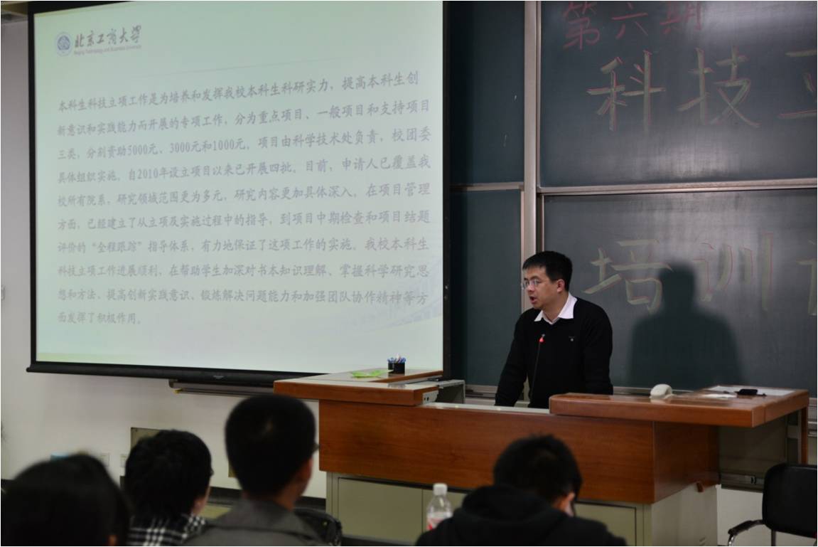 4月8日,yl23455永利在良乡校区成功举办了本科生科技立项-----第六期辅导培训的讲座。本次讲座邀请了yl23455永利郭毅教授与优秀科技立项员工孙贺分别进行现场指导与展示。