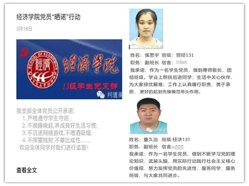 网上“晒诺”—— 党员先锋做好成才表率