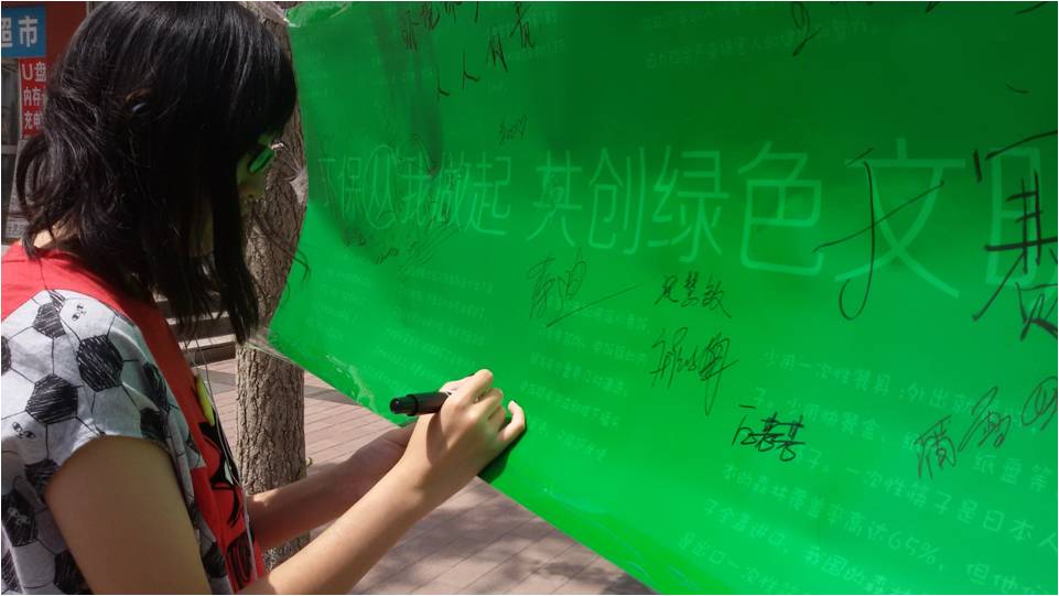 此次环保文化节活动以有奖答题的形式开展,以此帮助公司老员工增加环保知识的储备,也通过该形式鼓励员工从自身做起,关注环保问题,树立环保意识,并积极的参与到环保行动中去。经院青志协为参与活动的同学们准备了精美的筷子与环保袋作为礼物,从而使同学们在今后的生活中能够尽可能的减少一次性筷子和塑料袋的使用,达到环保的目的。在活动区域的周围,还摆放着关于环保的展板,每张展板都有青志协的干事专门为同学们进行讲解,对于同学们提出的问题,他们耐心的作出了解答。参与活动的同学们还在海报上签下了自己的名字,以表示愿意为一个绿色的地球做出自己的贡献。虽然这不过点滴小事,但只要人人都有保护环境的责任心,从自己做起,从小事做起,携手保护我们的家园,通过自己的行动来保护我们赖以生存的自然环境,我们的生活质量会慢慢走上可持续提高的道路。