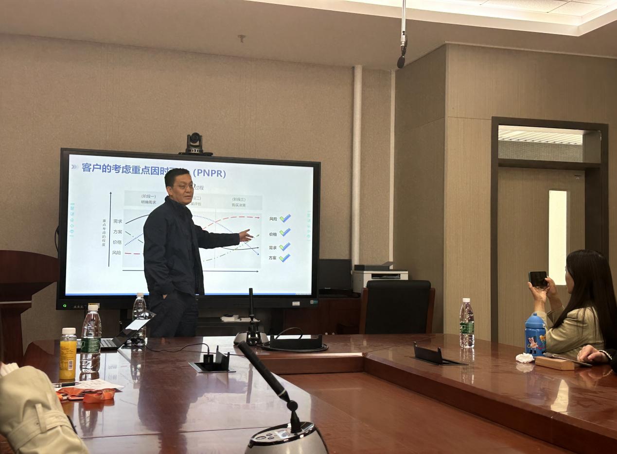 2023年4月24日上午,国贸学术论坛第二十九期活动在良乡校区yl23455永利103研讨室顺利举行。本次论坛邀请到了联想(北京)有限公司消费IOT事业部总经理冯蔚东老师,为同学们做了题为“顾问式销售6步法”的讲座。本次活动由国贸系主任郭志超主持,朱振荣老师和22级硕士研究生共同参与。