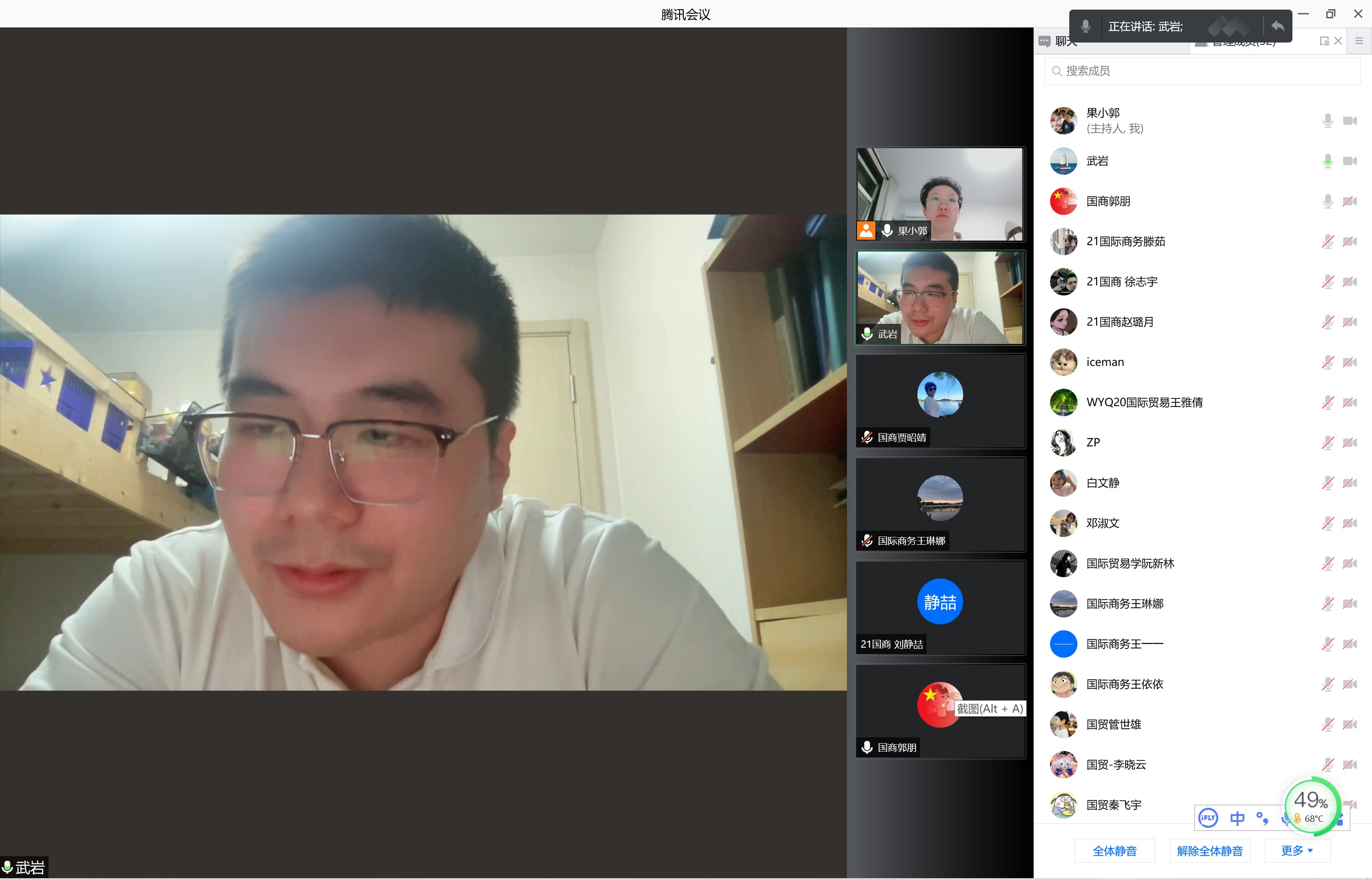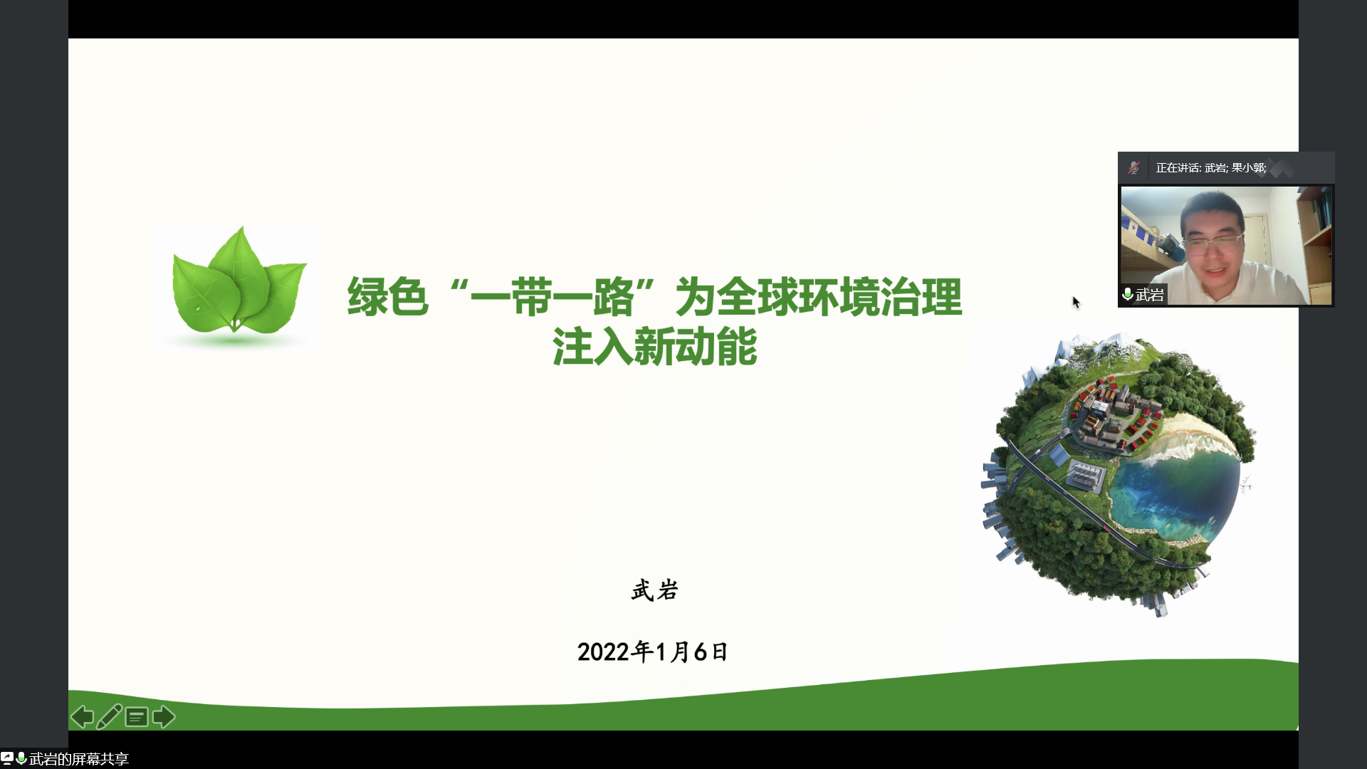 新年伊始,国际经济与贸易系师生学术交流氛围依旧活跃。16日晚,国贸学术论坛第二十二期活动在腾讯会议线上顺利举行。本次论坛由国贸系副主任、副教授武岩主讲,主题是《绿色一带一路为全球环境治理注入新动能》。本次论坛由国贸系副主任郭志超主持21级国际贸易学专业、国际商务专业的全体研究生参加了此次活动。