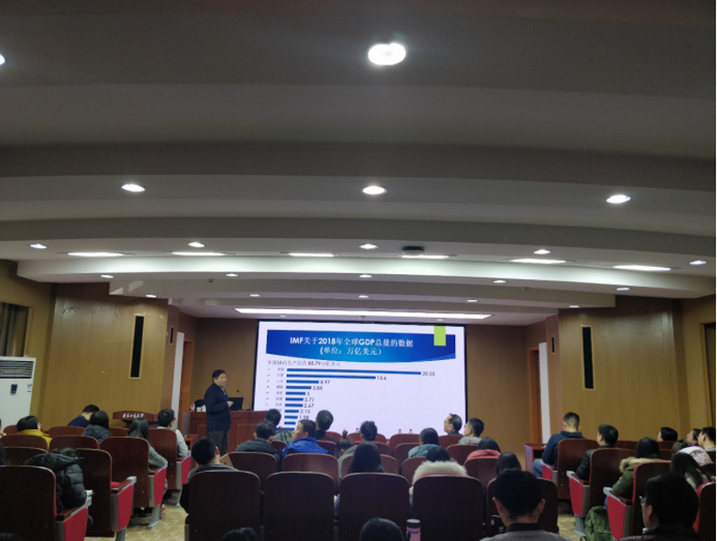 报告会上,朱老师首先IMF对全球增长率的最新预测、2018年全球主要经济体人均GDP为切入点,深入析了当前的全球经济形势发展趋势。随后通过对全球主要经济体财政政策和货币政策的对比分析,更加深刻的展现全球经济发展形势和我国经济发展面临外部环境。最后,朱老师结合自身体会,重点分析了中美贸易战的表面和深层原因中国应对贸易战的策略以及中美贸易战的未来走势。