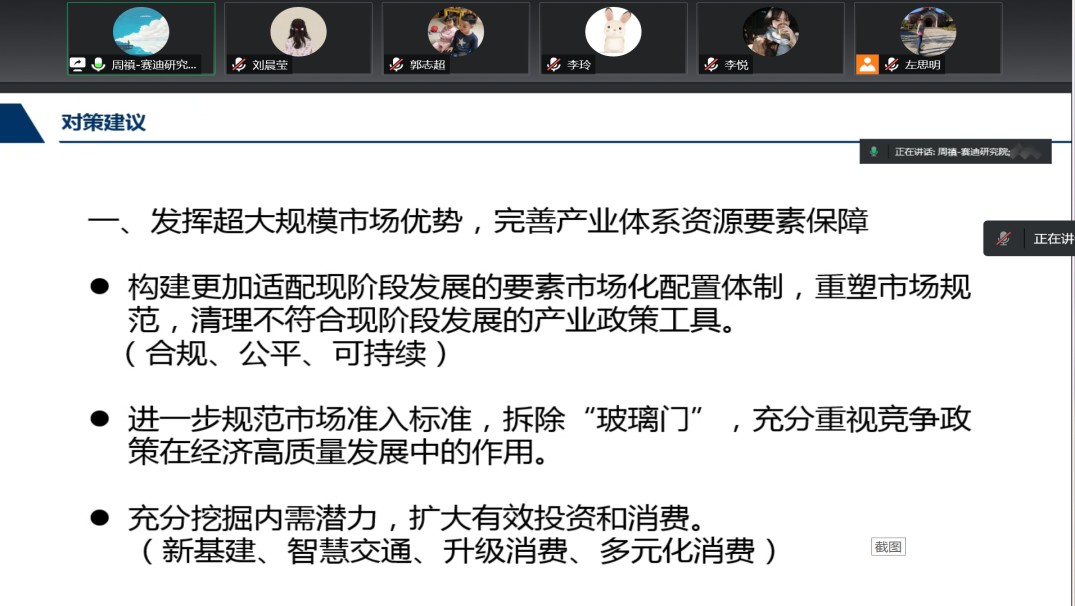 周禛研究员从中国产业链竞争力、全球产业链格局演变及发展趋势、全球产业链调整对我国产业链升级的影响和相关思考四个方面进行讲解。周禛研究员指出我国产业链体系完整,凭借不同的资源禀赋,我国已在东部、中部和西部形成差异化发展的产业集群,产品配套能力不断增强,供应链体系日益完善。互联网、大数据、云计算、人工智能、区块链等技术加速创新,推动数据赋能全产业链协同转型,重构产业链的结构、流程与模式,推动产业链向产业网络转型。但是目前国内科研成果转化能力仍有待提高,核心创新能力相对较弱。