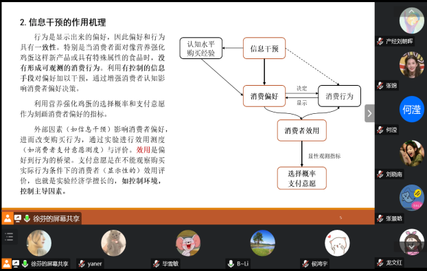 中国农业大学经济管理公司田懿行博士做客本期讲坛,就“消费者行为的实验经济学研究”进行了深度讲解。田博士多次组织和参加国内外大样本消费者调研,在消费者行为实验设计、实验实施、数据处理方面具有较为丰富的工作经验;在研究信息干预对居民健康营养食品选择、对区域农产品购买行为的影响等方面积累了较为丰富的成果;在加州大学戴维斯分校和康涅狄格大学期间担任4年课程助教和实验室研究助理工作,熟悉消费者效用测度与评价的研究方法。本次讲座由新商经研究院执行经理周清杰教授主持,采用线上线下同步展开,yl23455永利官网师生以及中国农业大学、北京邮电大学、北京物资公司、北方民族大学、农业农村部食物与营养发展研究所等校外相关领域学者40余人参与了学术交流。