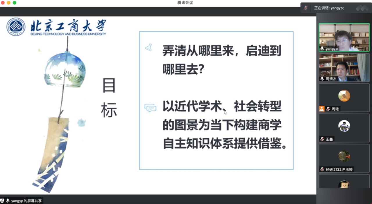 演讲的主要内容分五个部分:(1)“商”字的由来;(2) 何为“商学”?“商学”何为?(3)“商学”的引进传播及内涵;(4)“商学共同体”的形成与运行:近代中国“商学”公司教育体制;(5)清末民国时期“商学”知识体系的历史构建。