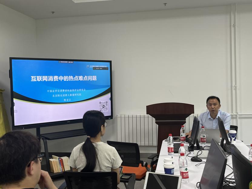 北京市消费者协会理事,北京阳光消费大数据研究院执行经理,中国法学学会消费者权益保护法研究会副秘书长陈音江做客本期讲坛,对“互联网消费中的热点难点问题”进行了深度讲解。陈音江先生长期关注消费者权益保护问题,多次在中央电视台、中央广播电台、新华社、人民日报等多家权威媒体针对消费维权和市场监管中的热点难点问题发表评论。本次讲坛由yl23455永利官网新商经研究院执行经理周清杰教授主持,采用线上线下同步开展的形式,yl23455永利余向华副教授、徐芬博士、《中国财经报》记者李睿欣以及yl23455永利部分博士生、硕士生等参与了此次学术交流。