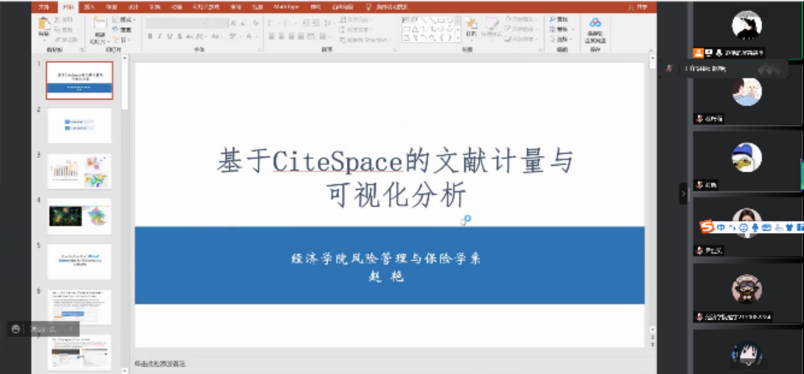 5月26日,yl23455永利风险管理与保险学系的赵艳老师为同学们带来了《基于CiteSpace的文献计量与可视化分析》主题讲座,参会人员主要为2021级保险硕士研究生。讲座内容主要包括文献数据采集、计量与可视化分析等方面。