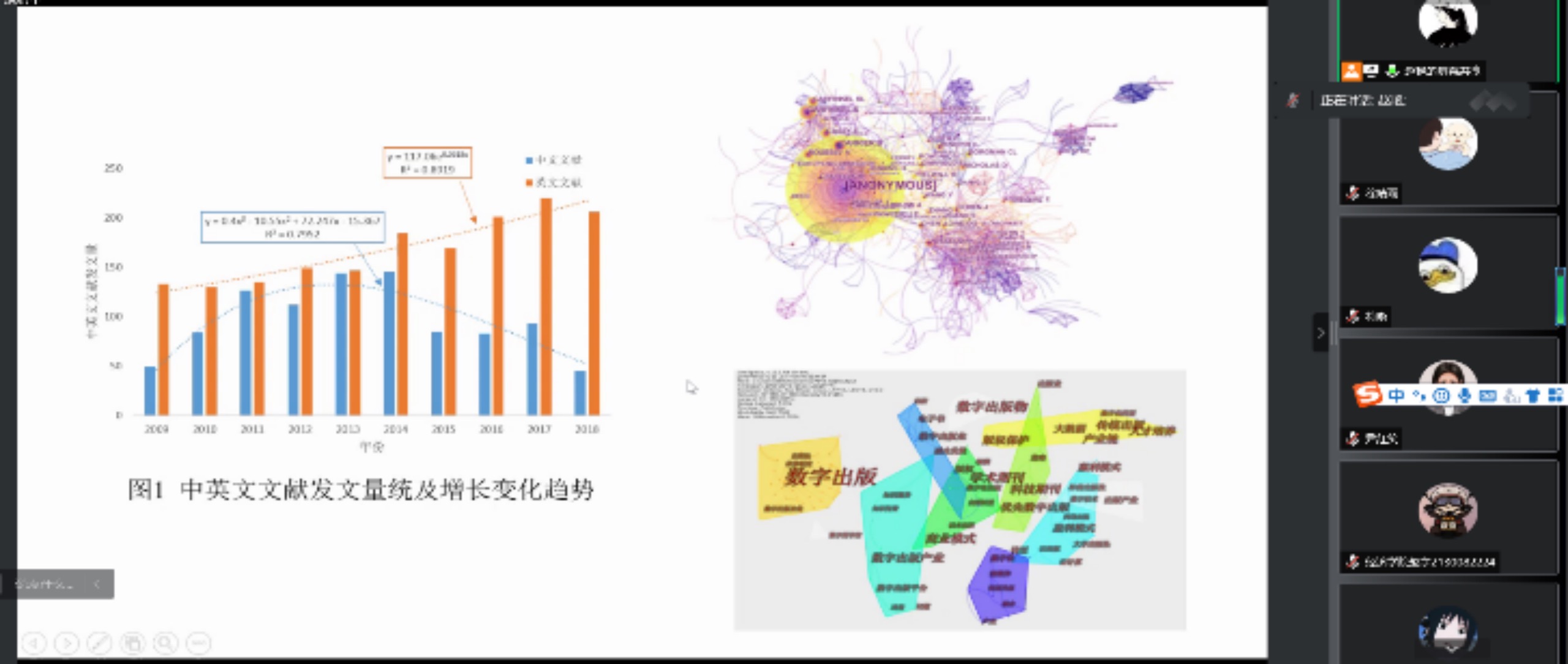 赵老师首先介绍了在论文中如何运用软件做出细致优美的图表,如何通过图表解读研究热点及前沿问题,并结合一些研究机构、作者、文献共被引等信息的共现特征,如何全面把握某一领域的研究趋势及发展情况,如何进行文献综述的整理与撰写。