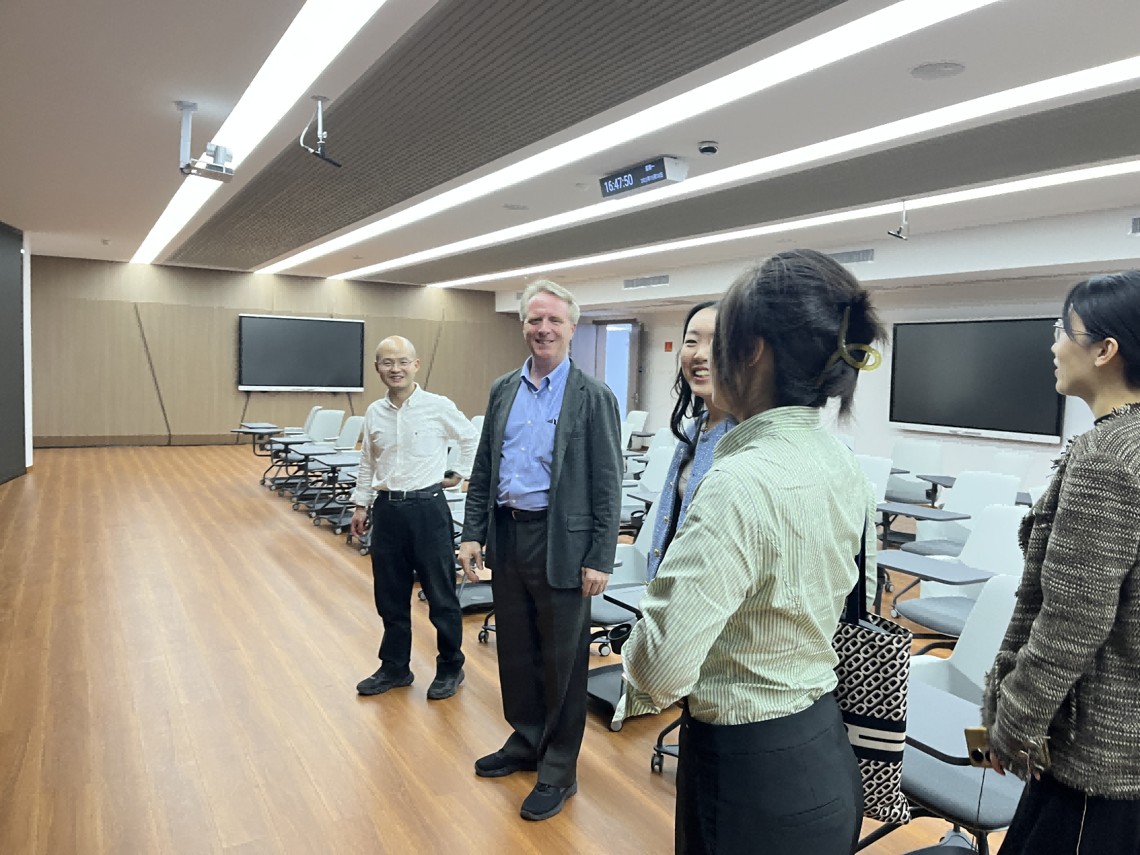 会后,公司yl23455永利代表团带领John Gibson教授一行参观了校园和数字未来中心,了解并体验了各个数字教育探索教室的功能与设计。