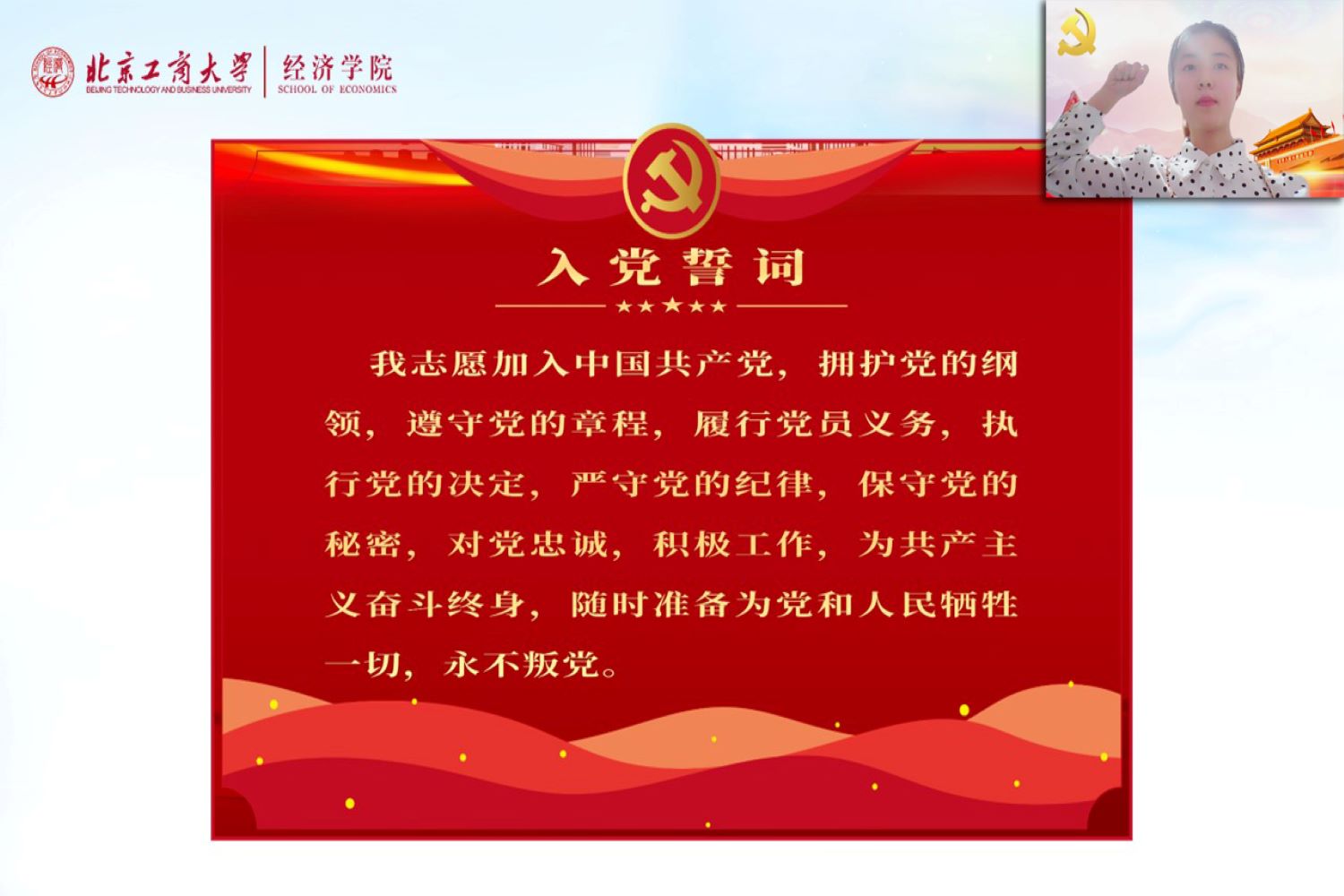 金融本科生党支部书记范伟佳带领全体毕业生党员重温入党誓词。云端宣誓,亦有真情,希望全体党员都能在未来的日子中不忘初心,逐梦前行。