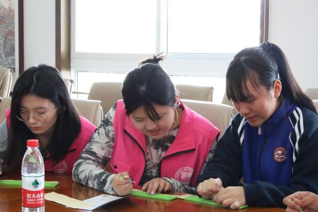 指尖温度,盲文普及。在四位盲校团员的带领下,同学们进行了盲文普及体验活动。他们为大家详细地介绍盲文的由来、发展历史、盲板使用方法及书写原理,并亲自指导每位同学用盲文笔在盲纸上成功写下此次活动的主题“共克黑暗,追光前行”。同学们以指尖为媒介,跨越时空,在凹凸不平的盲文上书写着对生活的永不言弃和对未来的美好期盼。