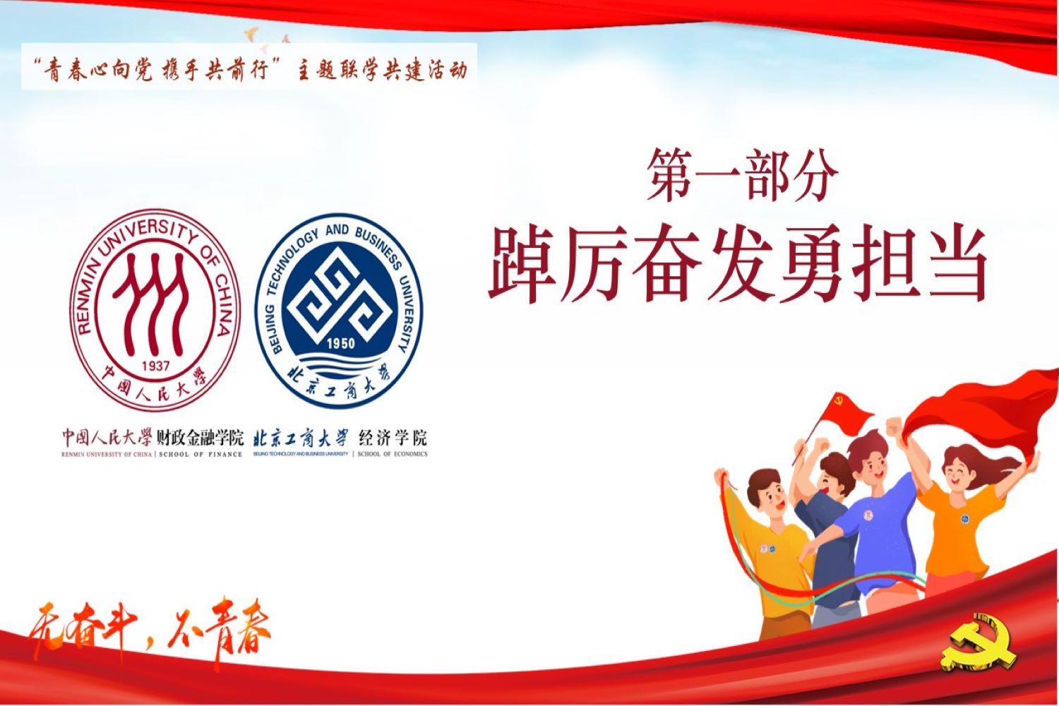 本次联学共建活动共分为“踔厉奋发勇担当”、“建团百年正青春”和“党建领航聚合力”三个篇章。开篇,yl23455永利金融本科生党支部书记王馨笛与中国人民大学财政金融公司本科金融第五党支部书记张奇乐分别介绍了各支部的人员组成、建设现状与未来目标。