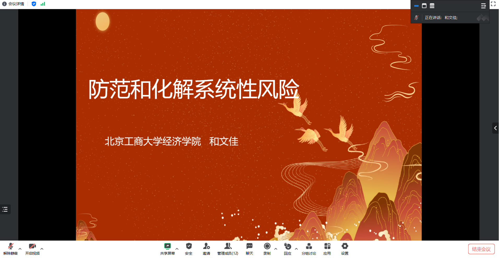 首先,和文佳老师以题为“防范和化解系统性风险”进行了汇报。和老师从政策梳理、防范和化解系统性风险的必要性和重要性、新要求和新挑战、保险和系统性风险四个方面展开了分析,解读了保险业如何发挥经济减震器和社会稳定器功能以及如何防控自身系统性风险等。