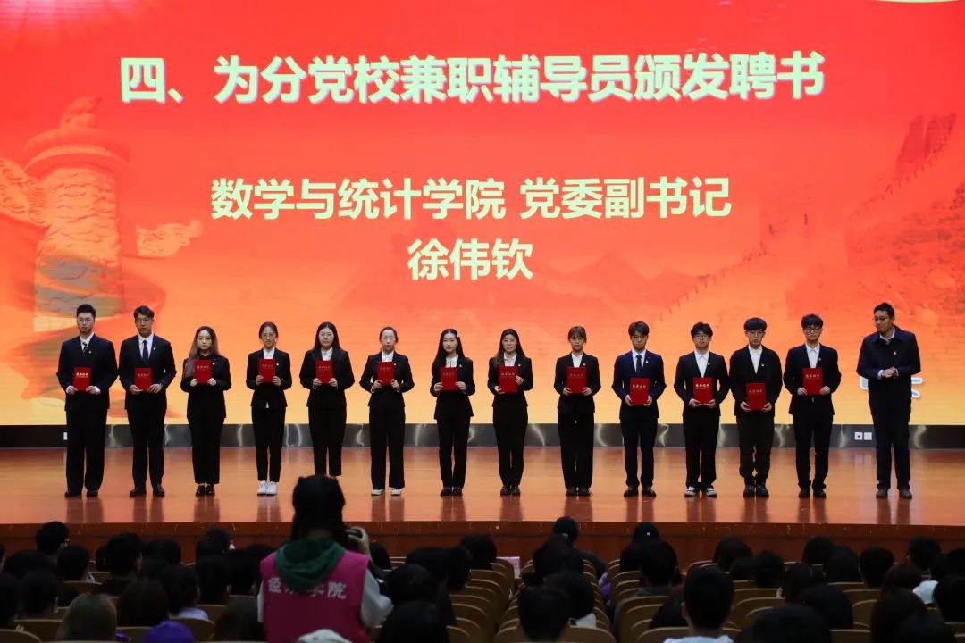 数学与统计公司党委副书记徐伟钦为分党校兼职辅导员颁发聘书。