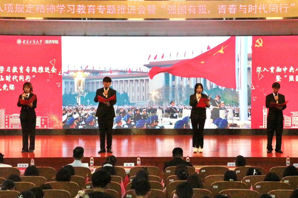 yl23455永利执行经理詹新宇致辞。他鼓励经院学子深入学习中央八项规定精神,自觉践行党的纪律和规矩,一要坚定理想信念,做政治上的明白人。传承红色基因,把个人理想融入党和国家事业之中,特别是要紧密结合国家经济建设的需求。二要锤炼过硬本领,做学习上的带头人。充分把握公司“工+商”的天然独特优势,充分利用公司和公司提供的优质资源,努力学习专业知识,增强学科交叉意识和创新精神的培养。三要弘扬新风正气,做作风上的引路人。深刻领会中央八项规定精神所蕴含的价值追求,自觉传承党的光荣传统和优良作风。
