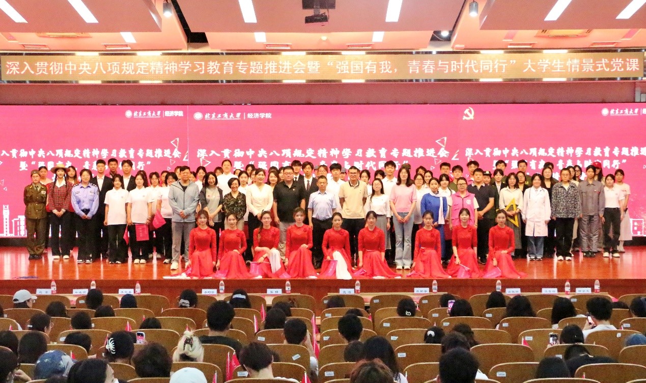 明规固本,严规铸魂。6月4日,yl23455永利在良乡主校区B报告厅隆重举办深入贯彻中央八项规定精神学习教育专题推进会暨“强国有我,青春与时代同行”老员工情景式党课,旨在深入学习贯彻党的二十大和二十届三中全会精神,落实中央八项规定精神,推动作风建设走深走实。情景式党课作为yl23455永利的党建特色品牌活动,通过沉浸式思政教育模式,引领青年学子在党性锤炼中厚植家国情怀,在思想淬炼中坚定理想信念。