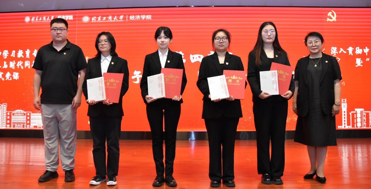 党委研究生工作部副部长张倩、党委员工工作部副部长党浩为宣讲团代表颁发聘书和赠送学习用书。这既是一份荣誉,更是一份沉甸甸的责任。希望宣讲团成员能够以中央八项规定精神为指引,严谨治学、客观公正,深入挖掘习近平经济思想与科学家精神的内涵与价值,以生动鲜活的形式向广大师生和群众进行传播。