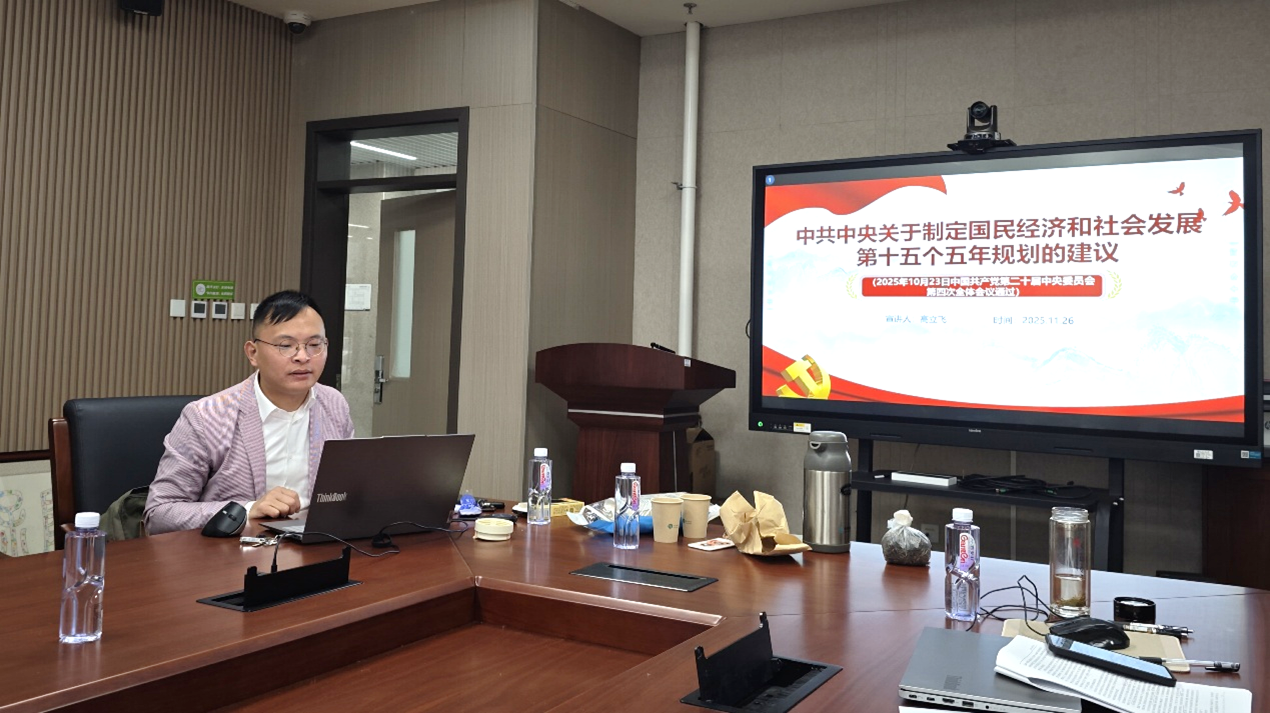 会议第二阶段,高立飞老师带领大家学习了《中共中央关于制定国民经济和社会发展第十五个五年规划的建议》(以下简称《建议》)。高老师对《建议》全文做了总体概述,阐述了制定国民经济和社会发展第十五个五年规划的指导思想、原则与主要目标。系统解读了《建议》中统筹教育强国、科技强国、人才强国建设的战略部署,以及“一体推进教育科技人才发展”“办好人民满意的教育”“加快拔尖创新人才自主培养”等核心内容。