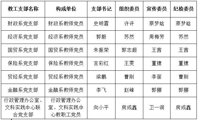 公司党委现有党委委员10人,党员教职工96人,占全院教工总数的69%。公司下设7个教工党支部:行政管理办公室与文科实践中心联合党支部、国贸系党支部、贸经系党支部、金融系党支部、保险系党支部、经济系党支部、财政系党支部,公司党委积极落实党支部书记“双带头人”原则,推荐系主任、学科带头人担任支部书记,为更好地推进公司基层党建工作与教学科研工作双促进、双提高打下良好基础;公司全面推进党团班“三位一体”协同工作机制,按照专业大类纵向设立党支部,研究生的党支部设在班级,全方位多层次覆盖到员工党员管理,为支部活动开展、党员作用发挥搭建起更好的平台。公司目前共开设10期入党积极分子培训班,累积培养积极分子1650名,储备了大量的后备力量。