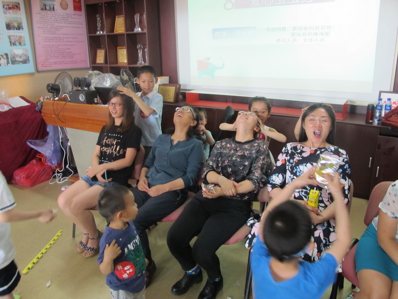下午两点,活动在“我的节日嗨翻天”踩气球环节中拉开帷幕。在杨琼老师活泼的主持下,“破冰之旅、我最闪亮、亲亲连连看、打怪兽、爸爸妈妈我想对你说、雪人我来帮帮你、爱心宝宝秀、动画竞猜、光影天地等环节的活动陆续展开,快乐、幸福洋溢在家长和小朋友的脸上。在“破冰之旅”环节中,队长带领队员绘制队标,写出自己的梦想和心愿;在“爱心宝玉秀”环节中,小朋友给爸爸妈妈揉肩、捶腿,俨然一名小小按摩师,受到家长的点赞鼓励。每个环节中,小朋友相互配合,共同分享,度过一个愉快的节日。