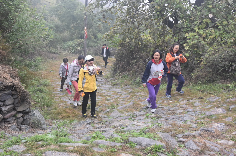 30余名教职工沿着古道缓缓而上,时而驻足观看古道边的介绍,时而停下来张自拍或合影,大家边走边聊,享受大自然赋予我们的美景。到达古道最高处,分工会开展了踢毽子和跳绳比赛,评出了一、二、三等奖,丰富了教职工业余文体活动。