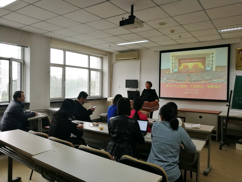 党的十九大胜利召开,统计系党支部开展了学习和践行十九大精神的学习活动。2017年10月25日下午,统计系党支部在综合楼714开展了主题为“学习十九大报告,不忘初心,砥砺前行”的“两学一做”学习活动。