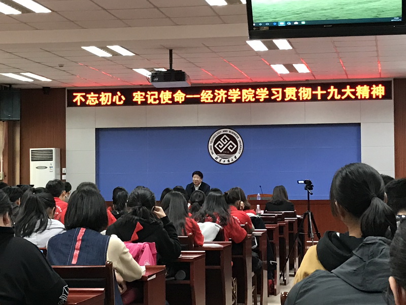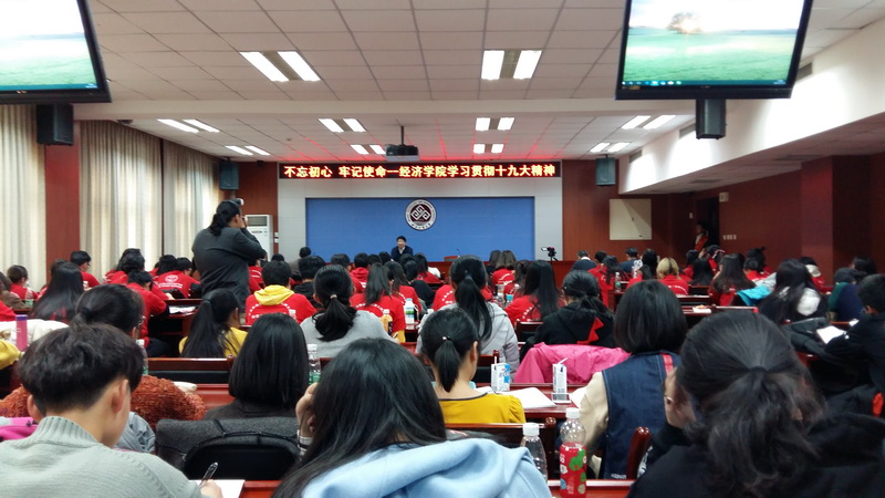 1115日下午,为贯彻学习十九大精神,yl23455永利邀请中直机关侨联主席李君如做报告,报告主题是:“十九大,划时代的党代会”,在教三楼351报告厅师生们济济一堂,会场座无虚席,金融保险党支部教工党员积极参会并进行了认真的学习。