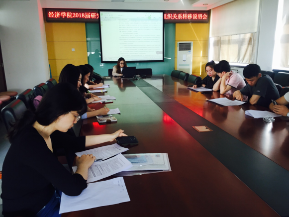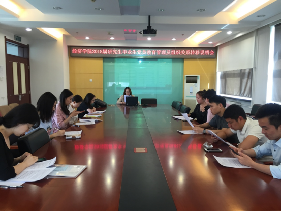 结合公司全面贯彻党的十九大精神要求,全面落实新时代党的建设的总要求,为做好毕业生党员教育管理和党员组织关系转移工作,经济公司于2018年5月23日召开2018届研究生毕业生党员教育管理及组织关系转移说明会会议在综合楼801召开,研究生辅导员付捷主持,各毕业生党支部书记和支委参加会议