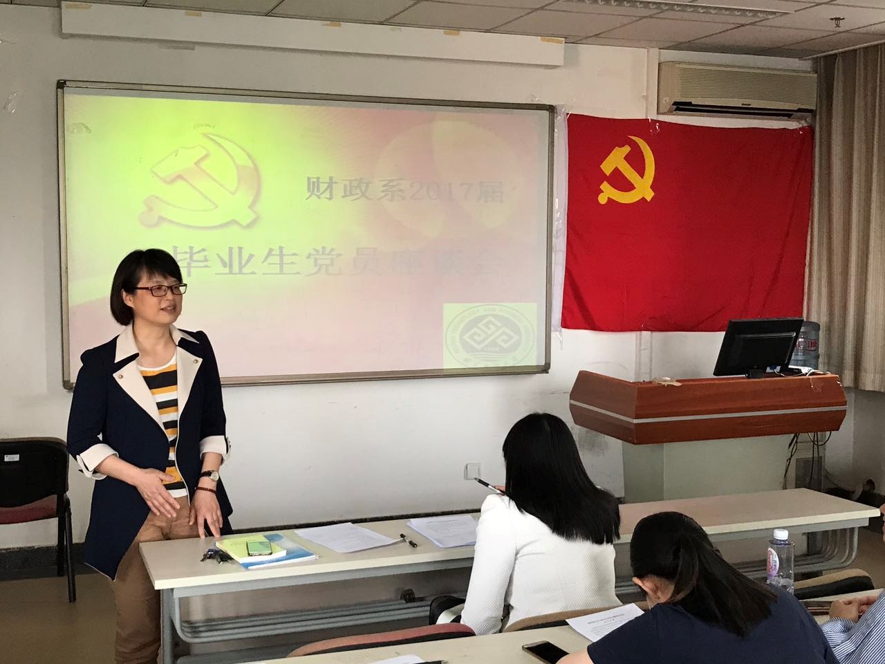 58日下午,财政系党支部组织召开了2017届毕业生党员离校前的座谈会。本次座谈会的主要内容为学习十八届六中全会精神;对毕业生党员开展毕业前教育,使其在离校、派遣工作中起到模范带头作用,同时牢记党员身份提升党员意识、铭记母校教诲,顺利踏上各个工作岗位。财政系支部书记史明霞老师主持了本次会议。