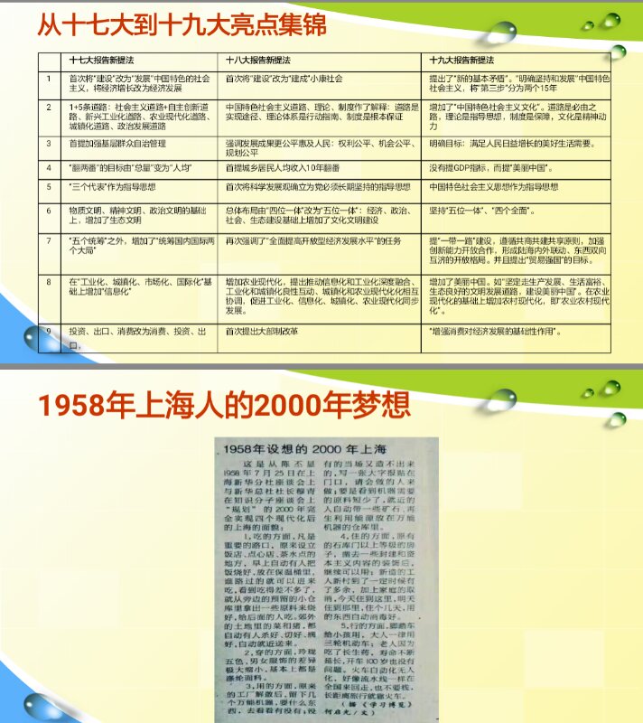 2018年恰值我国迎来改革开放四十周年,中国特色社会主义已经进入了新时代。洪涛教授以《十九大报告“十分钟”谈》为题,首先展示了自创的“十九大”报告一览图,简明扼要地图解“十九大”报告的主要内容。他从“十九大”的大会主题、历史方位入手,依次围绕“十九大”报告讲解了1个主要矛盾、2个阶段、4个伟大和自信、5个更加自觉、6个现代化经济体系建设、7个战略、8个新时期思想和从严治党、14个基本方略以及文化+民生+美丽中国,发展社会主义民主政治,推动社会主义文化繁荣昌盛,提高、保障与改善民生水平,建设美丽中国。此外,洪涛还以亮点集锦的方式展示了“十七大”报告、“十八大”报告、“十九大”报告新提法,并对“1958年设想的2000年上海”进行了历史回顾和现实映照,表明60年前畅想的中国梦已经实现。