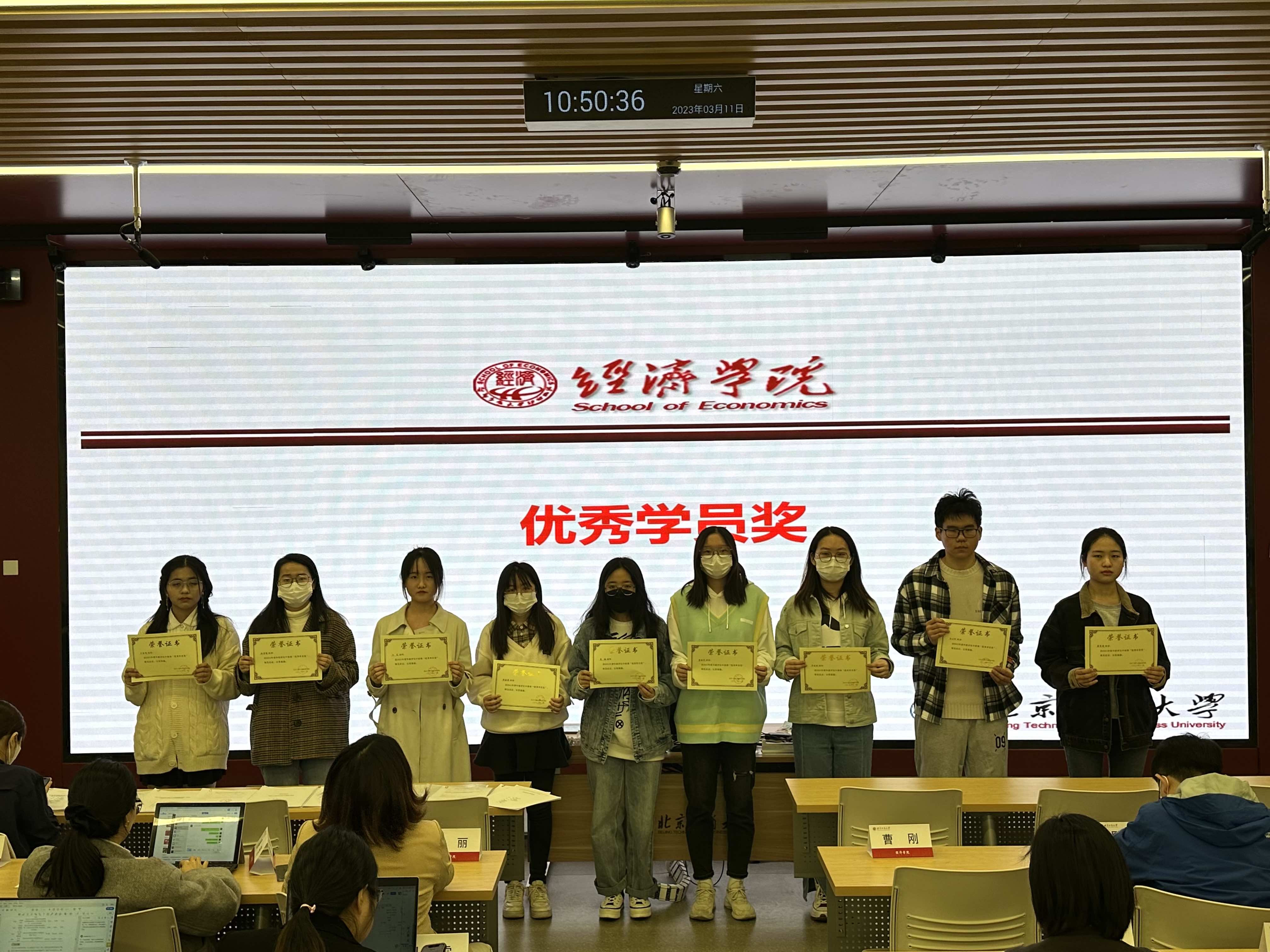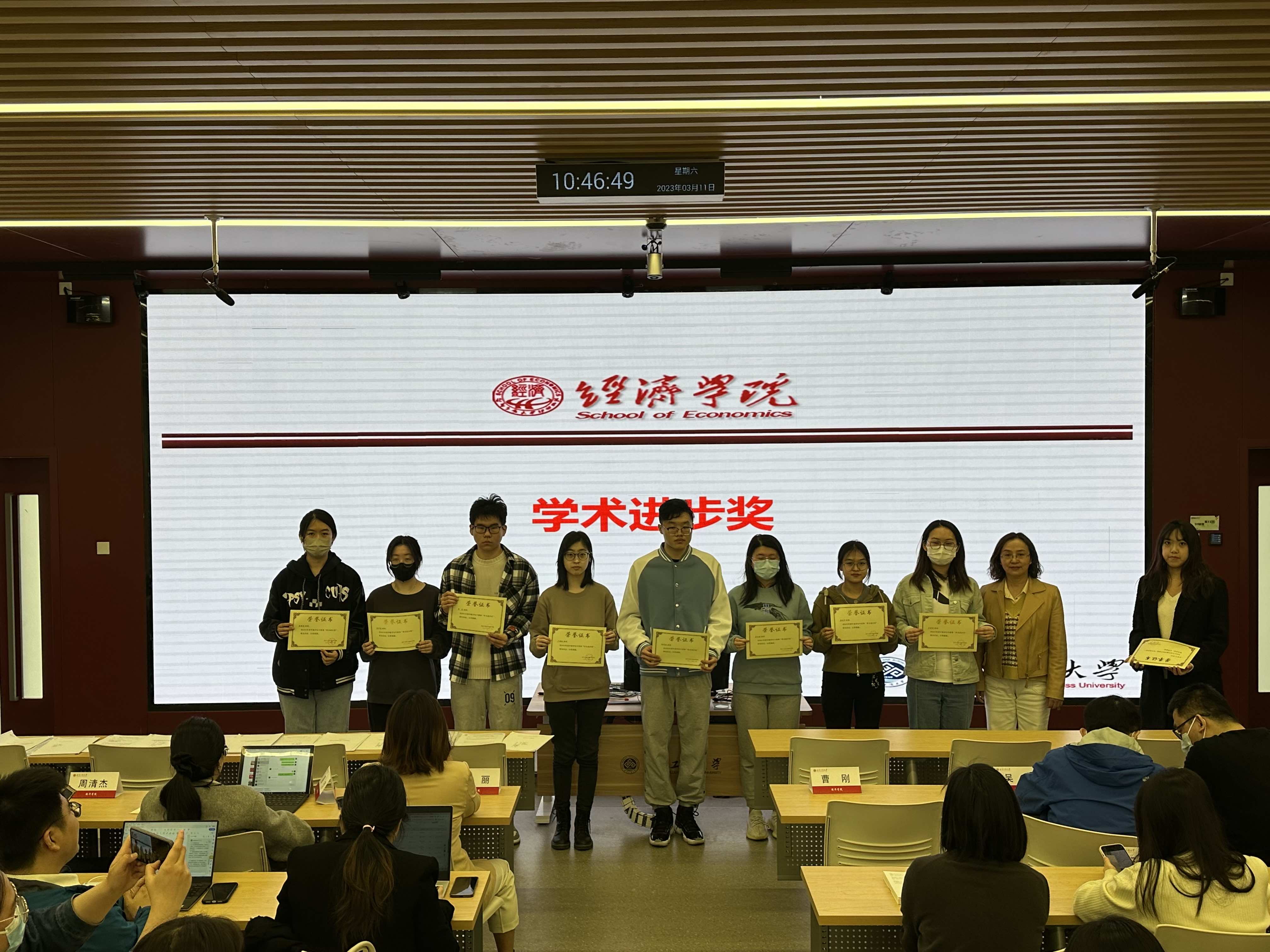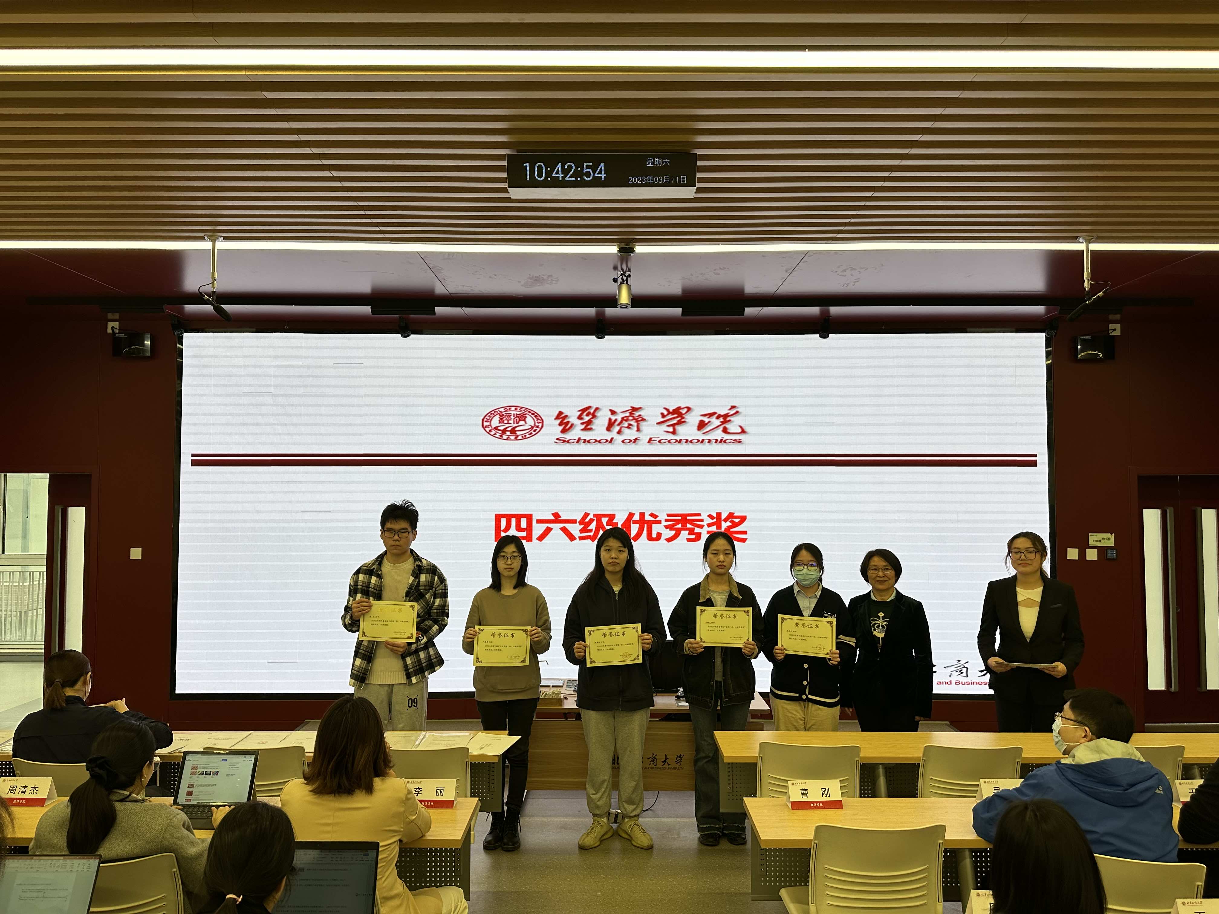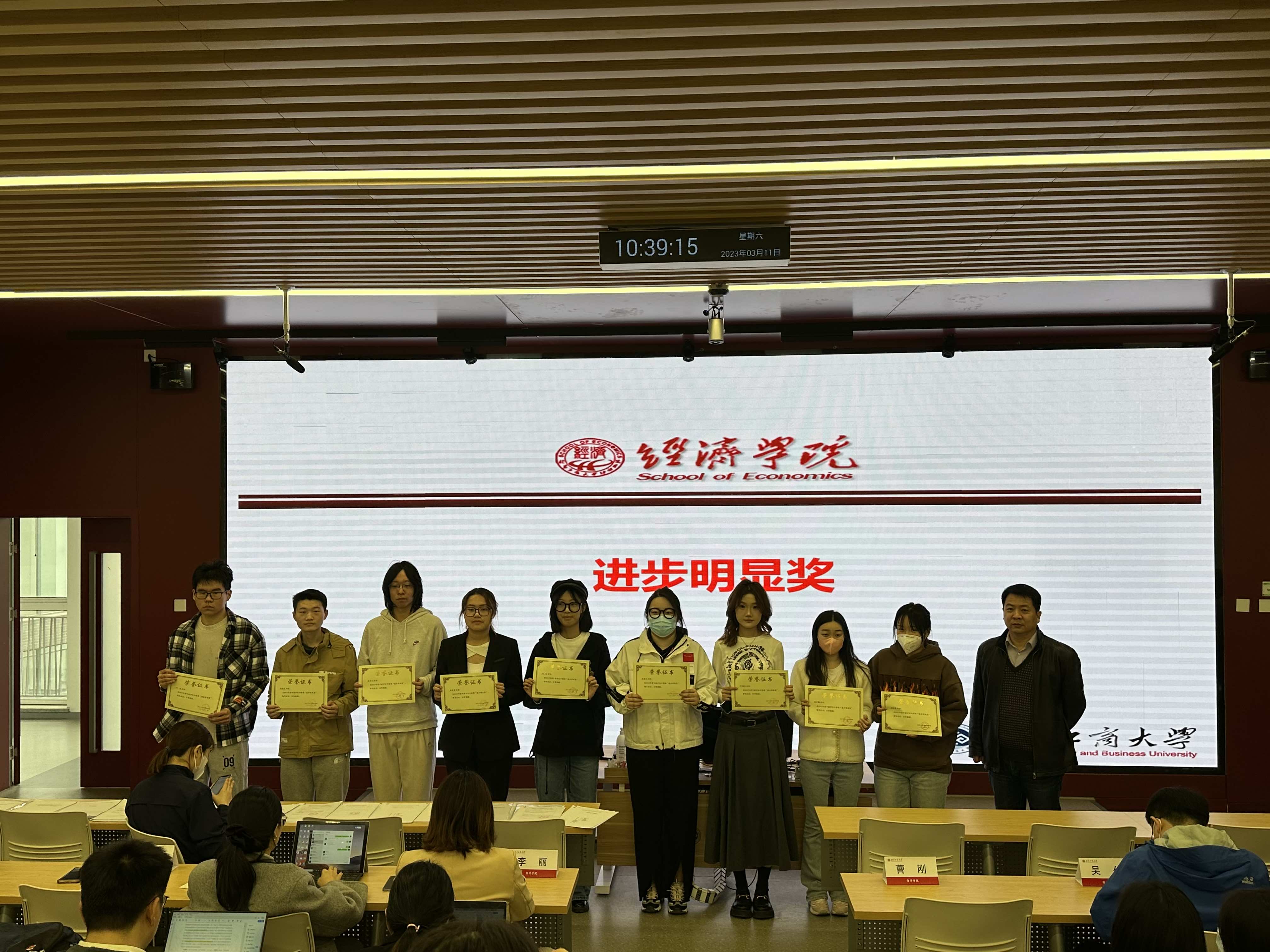 在本次会议中,公司颁发“进步明显奖”、“四六级优秀奖”、“学术进步奖”、“优秀学员奖”、“突出贡献奖”等荣誉奖项由曹刚老师介绍了评奖标准和要求为同学们明确努力方向,树立目标。本次表彰共有64名同学获得了上述荣誉,他们在学业成绩、科研能力、综合素质等方面表现出色