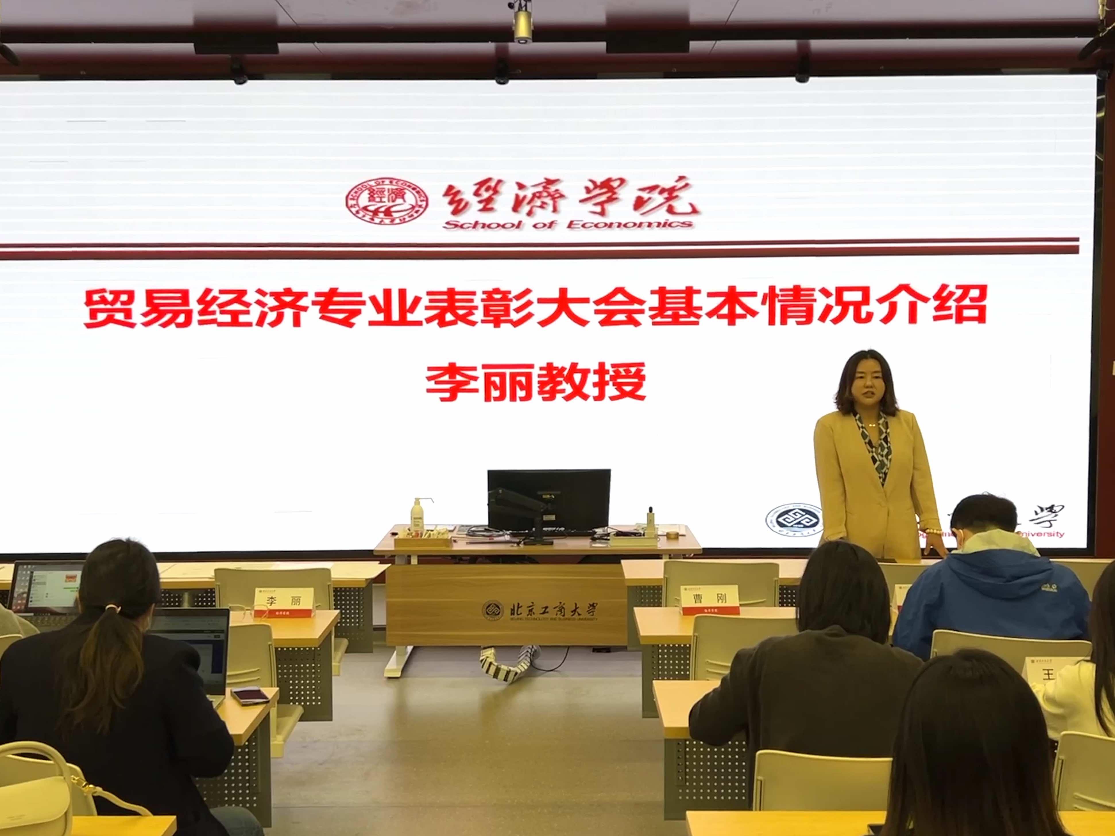 会上,系副主任李丽教授发表了热情洋溢的致辞,一方面向同学们表达了肯定和鼓励,同时也对导师们在本科教育中的辛勤付出表示谢意和敬意。贸经专业表彰大会举办五年以来,奖励了许多表现突出的员工,激发同学们在学习、科研、员工工作等多个方面的积极性和热情。她提出,贸易经济专业是公司的特色专业之一,公司将一如既往地加强贸易经济本科教育,为员工提供更优质的学习环境和更广阔的发展空间。