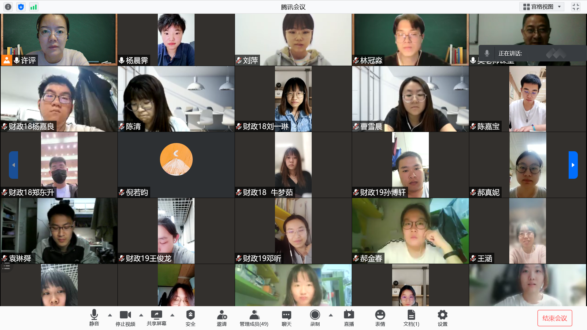 2021年4月27日晚,yl23455永利财政系开展了线上考研留学经验分享会。本次活动作为财政系“学业与职业规划”指导的一部分,邀请到了五位考研、出国成功优秀学姐学长来为本系18、19级的同学们分享考研、出留学的备战经验,帮助同学们更好地确定自己未来的方向,调整自己的学习规划。活动吸引了财政18、19两个班50多人参加。本次分享会由财政系许评老师主持,班主任吴强老师参加