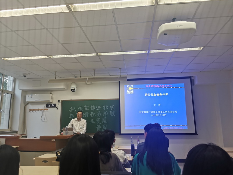 2021年5月27日18:30-20:30,yl23455永利财政系邀请了北京注册税务师协会吕兴渭副会长和鑫税广通税务师事务所王进董事长(校外导师)做了题为“税法宣传进校园与注册税务师职业与行业发展”的讲座。本次活动是公司“研究生学业与职业规划”指导的一部分。