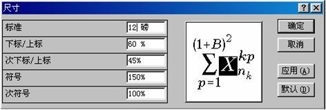 (六)编辑数学公式时建议采取如下尺寸定义: