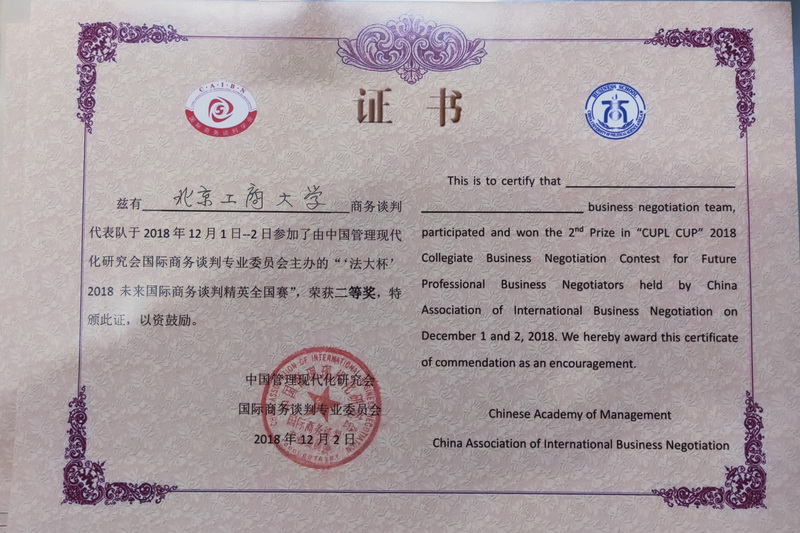 公司员工代表队双获2018“法大杯”未来国际商务谈判精英全国赛二等奖