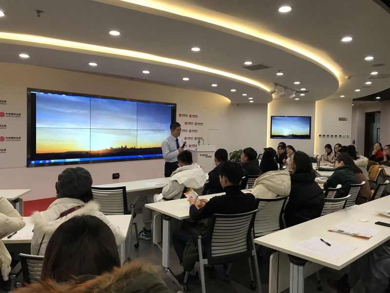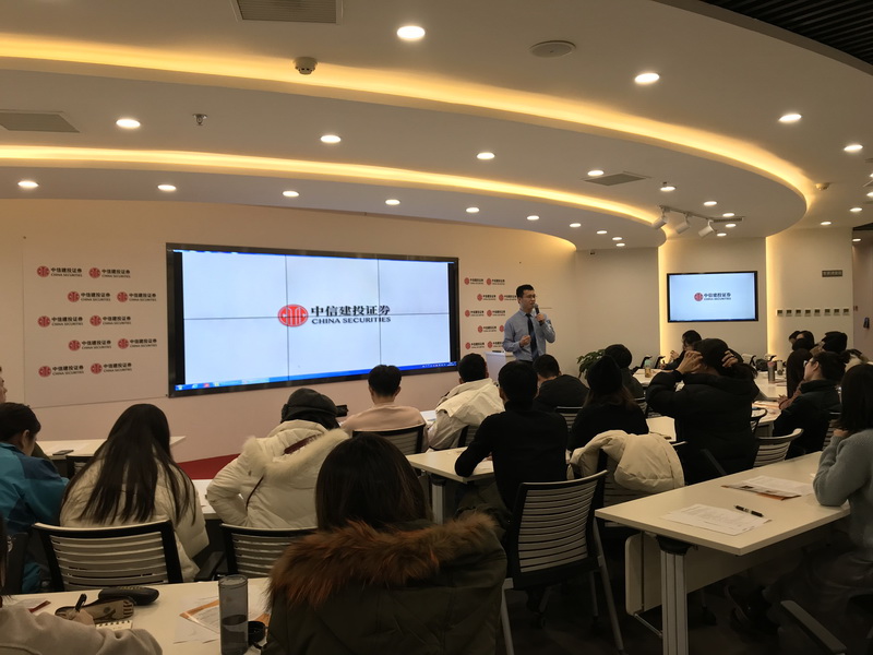 上午九点半,中信建投证券投资者教育基地的负责人通过精彩的宣传片向同学们介绍了中信建投的发展历史、主要业务、金融产品、经营业绩、员工构成、公司文化等情况,使同学们对中信建投和券商的业务类型、经营情况以及行业发展有了一定的了解。