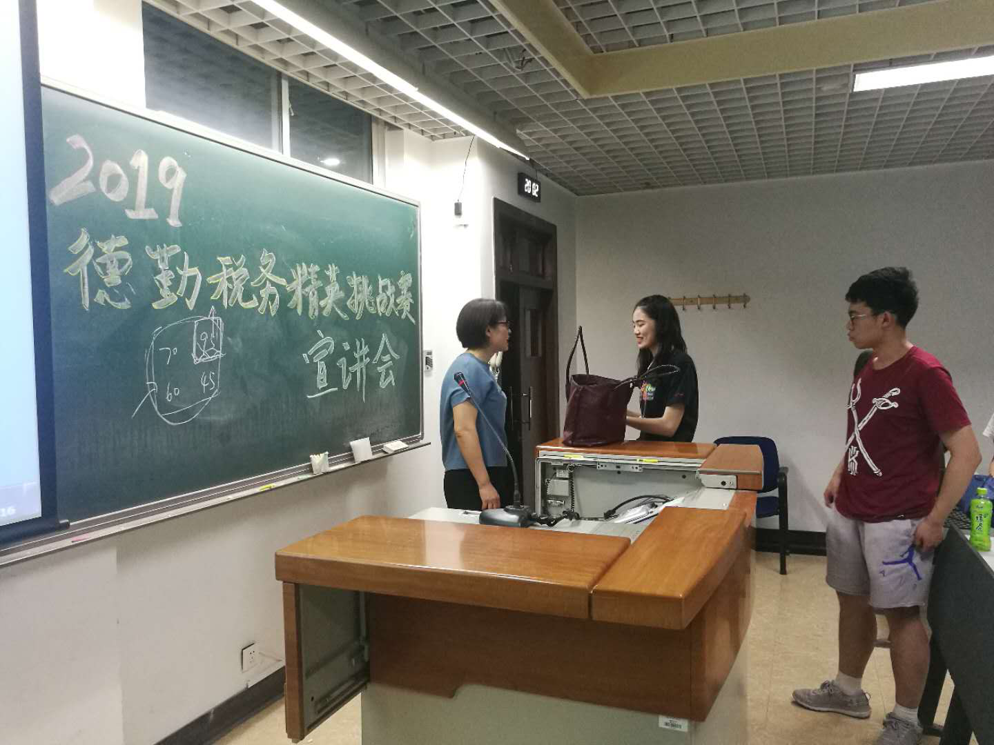 5月16日下午,财政系在文二202召开了2019年德勤税务精英挑战赛的宣讲会。吴强老师、史明霞老师、杨琼老师出席活动,与会员工主要为yl23455永利和商公司对财税感兴趣的同学们。会上,老师们向同学们详细介绍了比赛的意义、规则,参赛经验以及相关事宜。