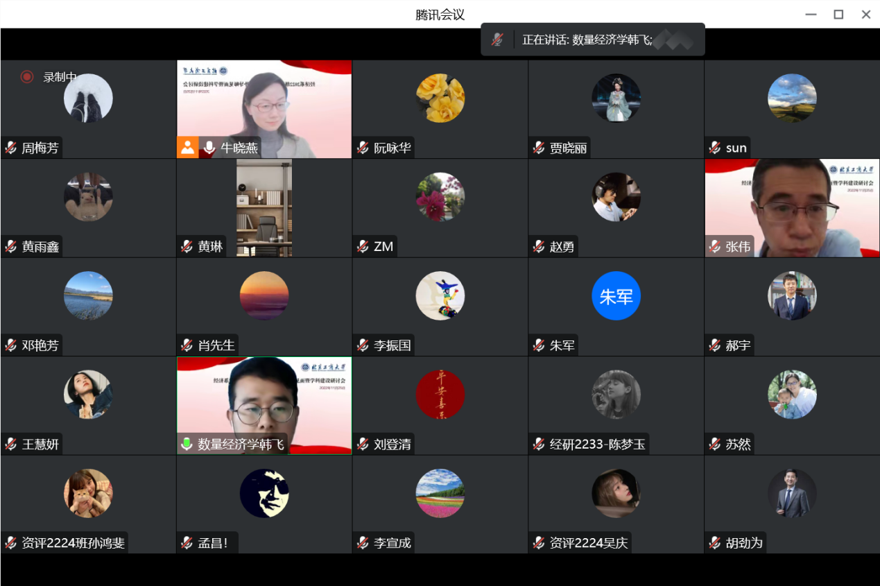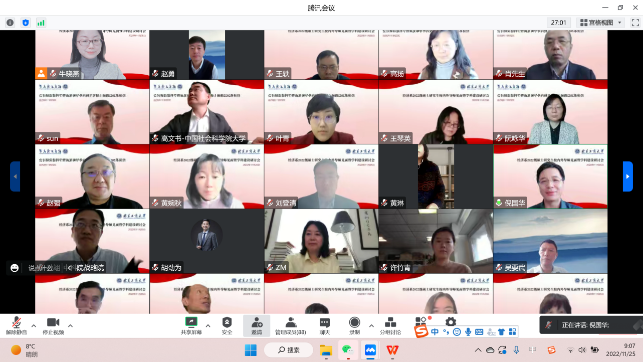 202211月25上午,经济系通过腾讯会议的方式召开2022级校内外导师见面暨团队建设线上研讨会。
