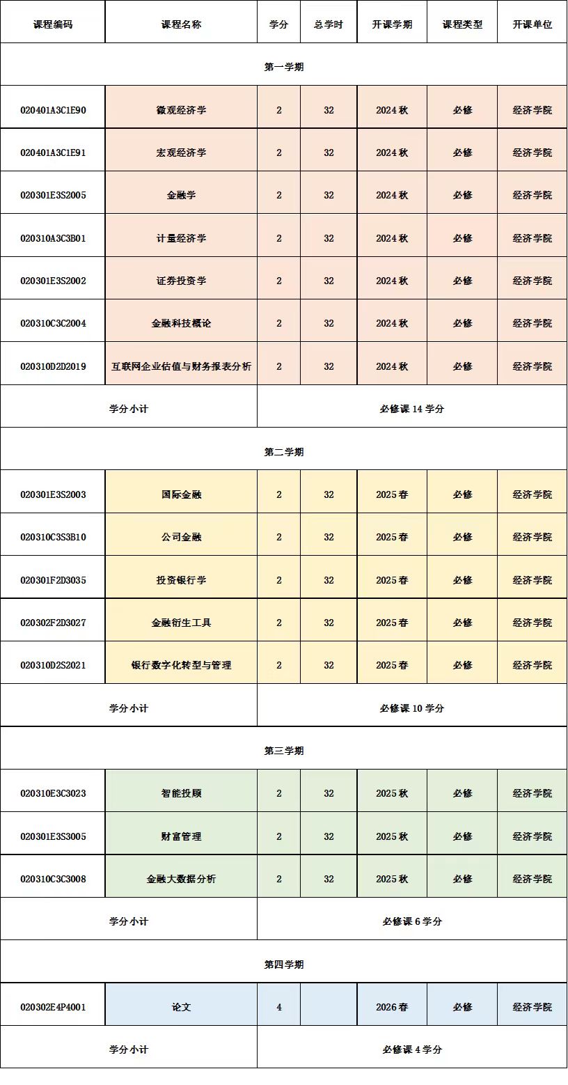 金融科技特色课程模块:金融科技概论、金融大数据分析、智能投顾、财富管理、银行数字化转型与管理、互联网企业估值与财务报表分析。