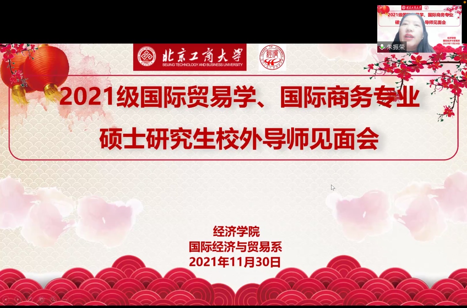 2021年11月30日,国际经济与贸易系师生通过腾讯会议方式召开了2021级硕士研究生校外导师见面会。国贸系校内外导师和21级国际贸易学、国际商务专业硕士研究生参会,会议由国贸系主任朱振荣主持。