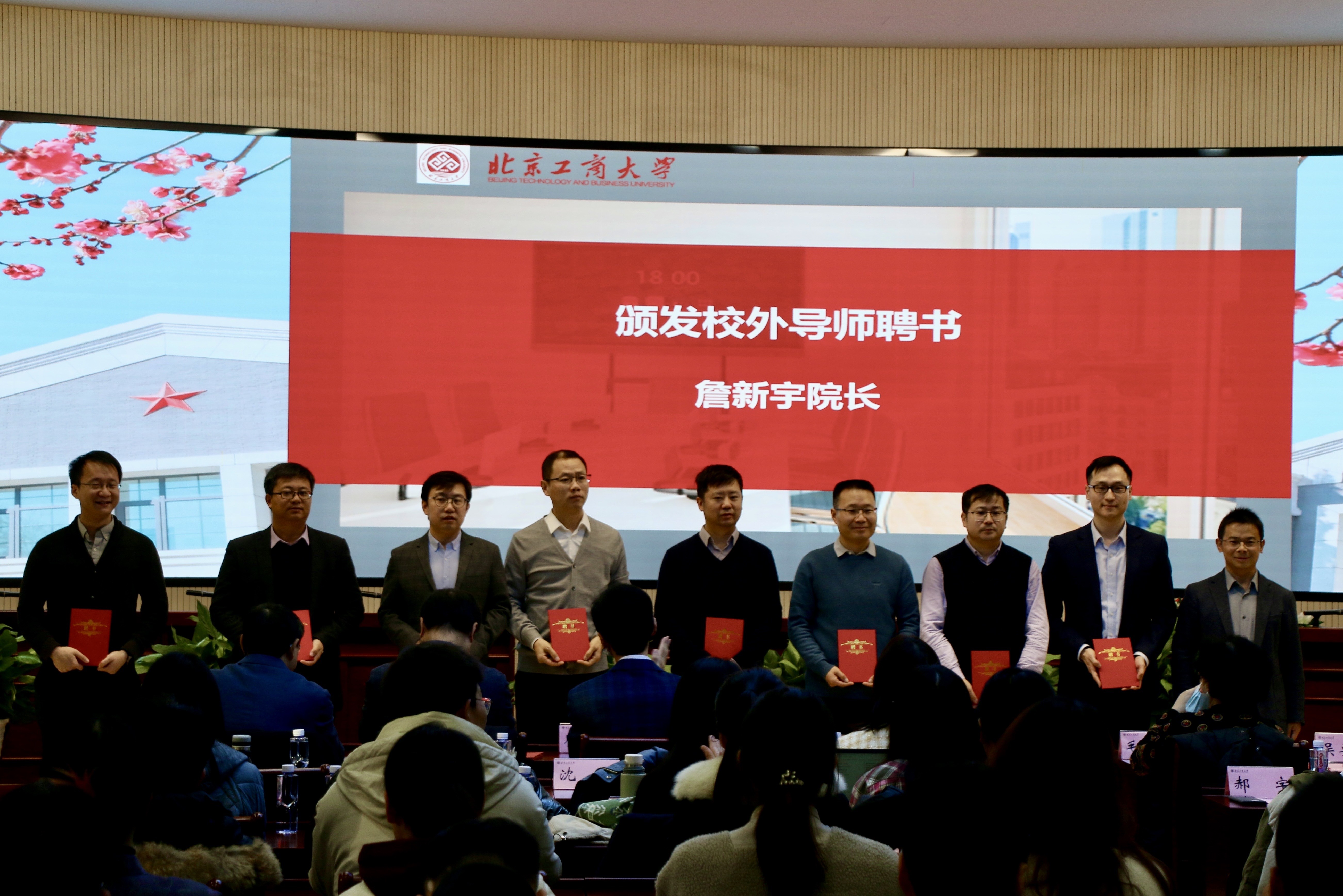 詹新宇经理为到会的校外导师颁发研究生校外导师聘任聘书,并对各位受聘导师表示感谢和祝贺。
