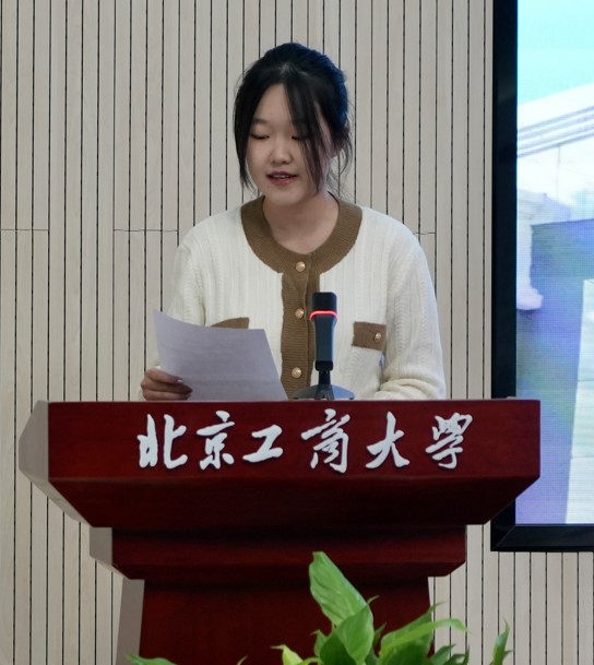 2023级国际商务专硕张若琪同学和2023级资产评估专硕胡怡冰同学分别作了新生代表发言,表达了读研感受、未来规划,以及对校外导师的感谢。