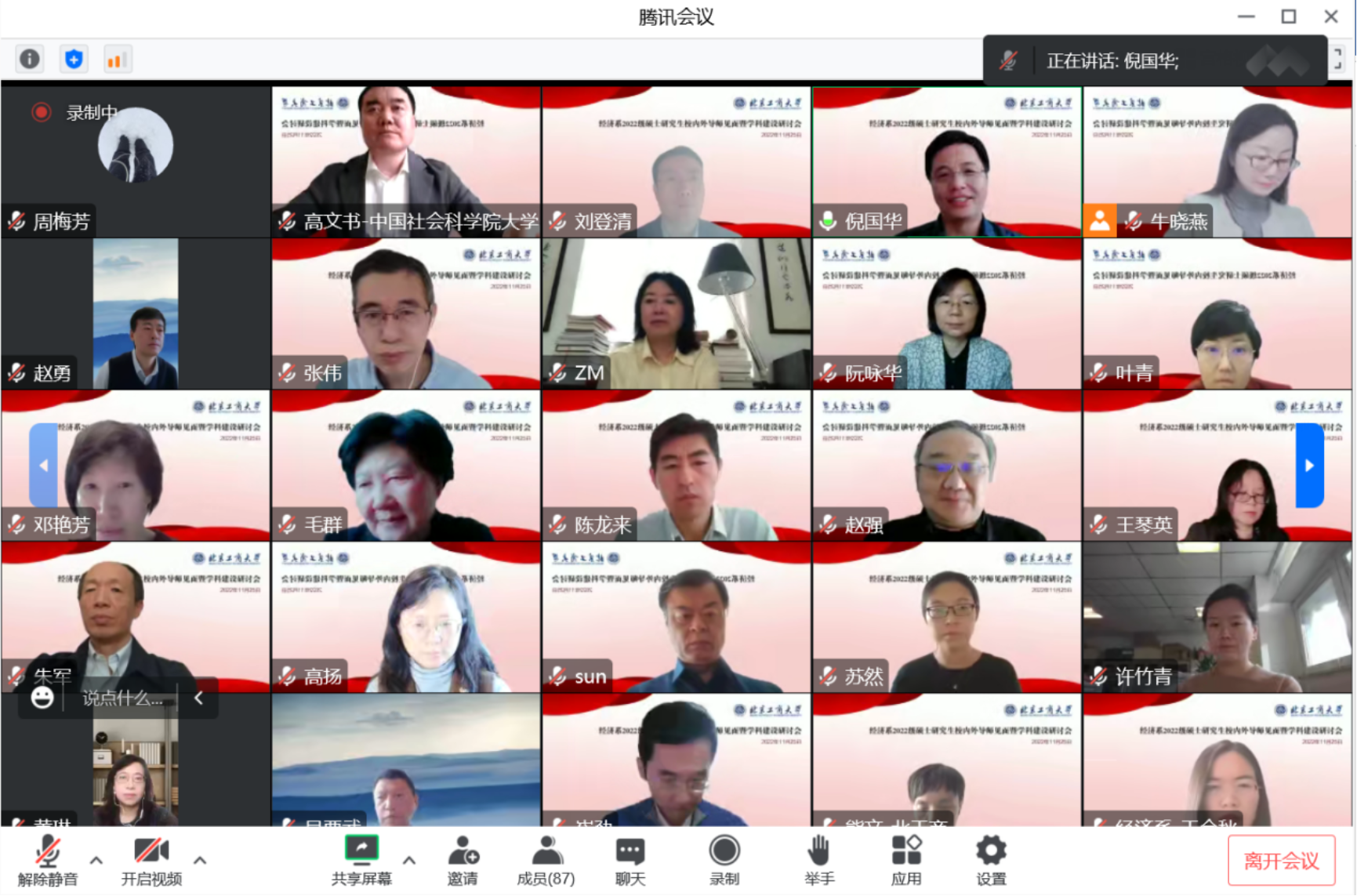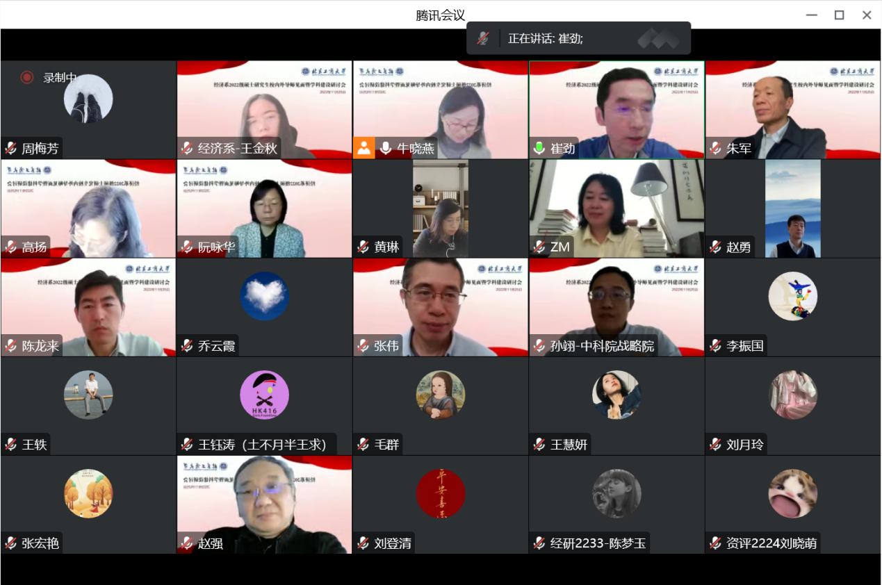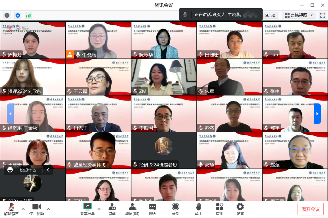 2022年11月25日上午,经济系通过腾讯会议的方式召开了2022级校内外导师见面暨团队建设线上研讨会。